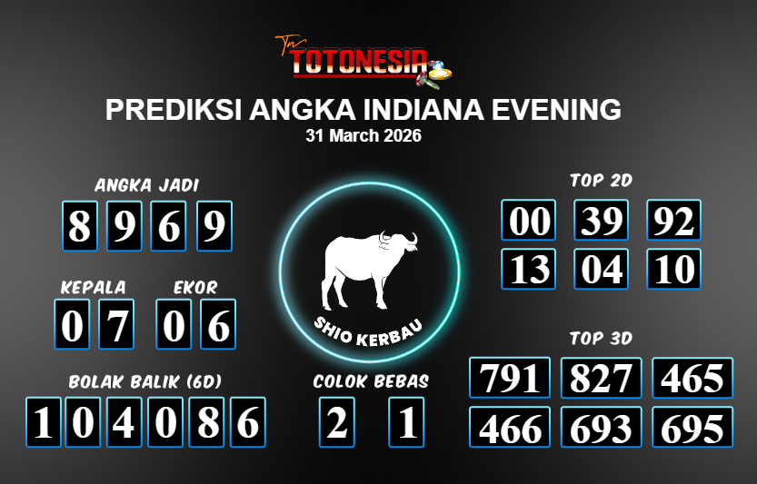 Prediksi INDIANA EVENING adalah perhitungan nomor togel unggulan dari agen suhu togel yang menyajikan angka prediksi paling akurat, sehingga memberikan banyak keuntungan saat bermain di pasar togel INDIANA EVENING . TotoNesia adalah prediksi dengan rasio kemenangan tertinggi di Indonesia. Sebagai penyedia togel yang dapat dipercaya, kami bertekad untuk memberikan ramalan togel yang handal dengan hadiah terbesarnya. Maka dari itu, jangan sampai terlewatkan prediksi bandar togel dengan hadiah terbanyak bet 100 dari pasar togel terbaik INDIANA EVENING Daftar sekarang juga di bandar.
