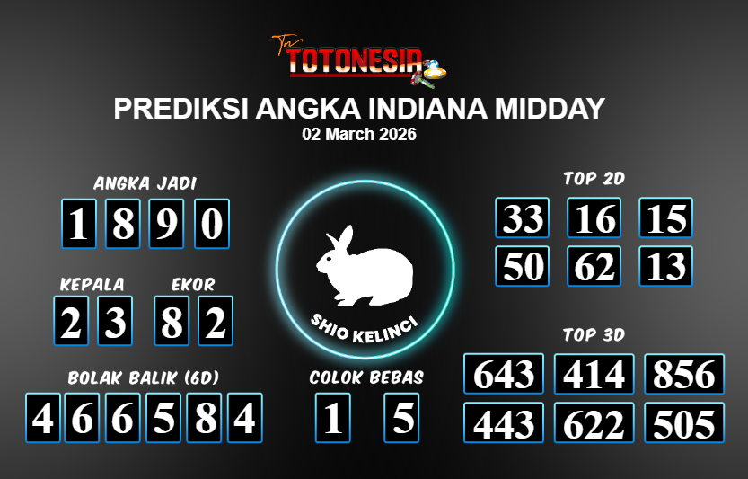 Toto Nesia : Bocoran Prediksi Togel INDIANA MIDDAY Tanggal 02 MARET 2026