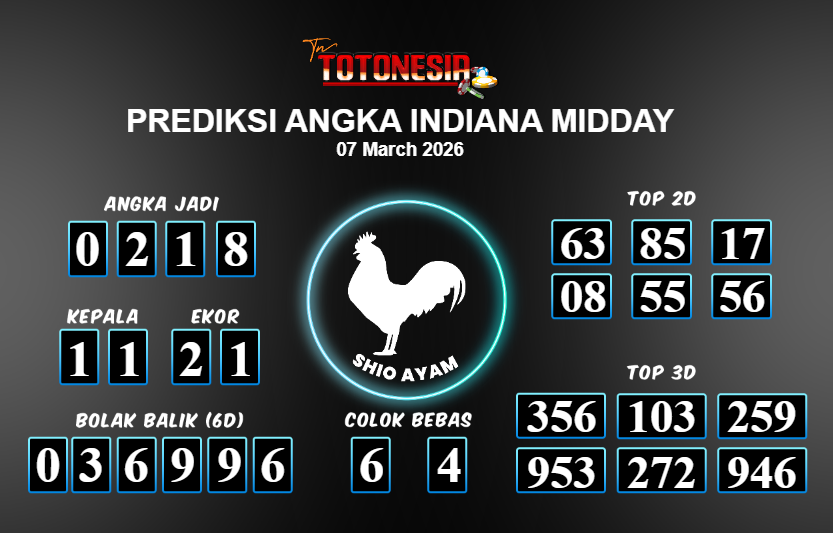 Toto Nesia : Bocoran Prediksi Togel INDIANA MIDDAY Tanggal 07 MARET 2026