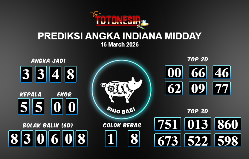 Toto Nesia : Bocoran Prediksi Togel INDIANA MIDDAY Tanggal 16 MARET 2026