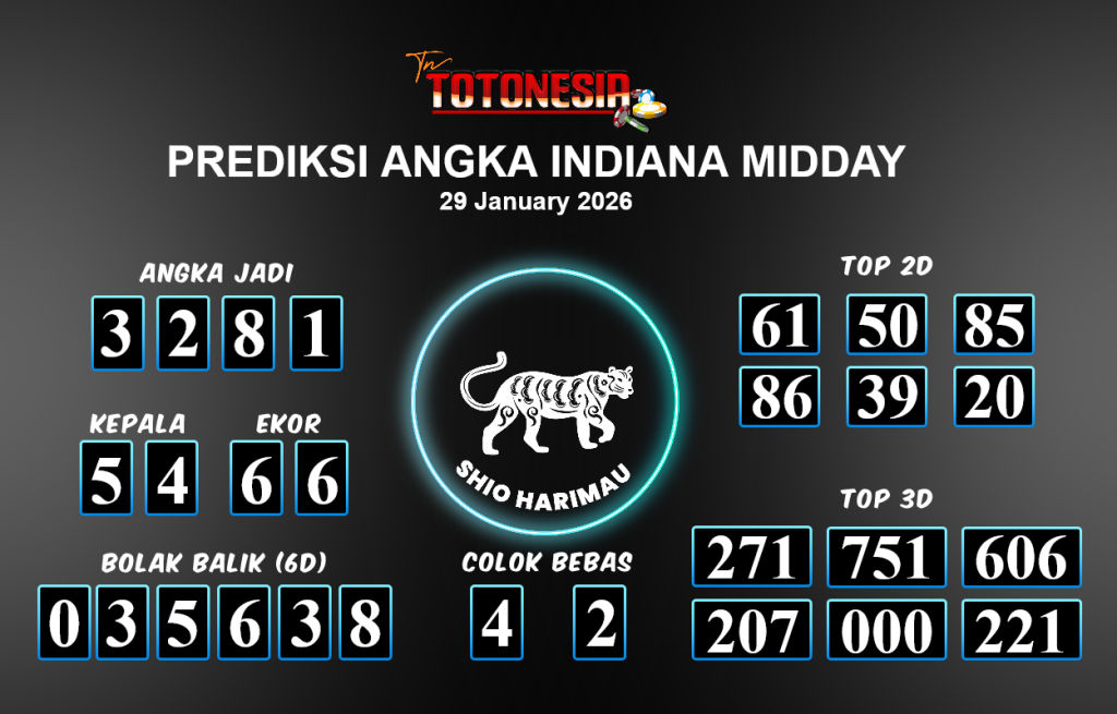 Prediksi INDIANA MIDDAY adalah perhitungan nomor togel unggulan dari agen suhu togel yang menyajikan angka prediksi paling akurat, sehingga memberikan banyak keuntungan saat bermain di pasar togel INDIANA MIDDAY . TotoNesia adalah prediksi dengan rasio kemenangan tertinggi di Indonesia. Sebagai penyedia togel yang dapat dipercaya, kami bertekad untuk memberikan ramalan togel yang handal dengan hadiah terbesarnya. Maka dari itu, jangan sampai terlewatkan prediksi bandar togel dengan hadiah terbanyak bet 100 dari pasar togel terbaik INDIANA MIDDAY daftar sekarang juga di bandar.