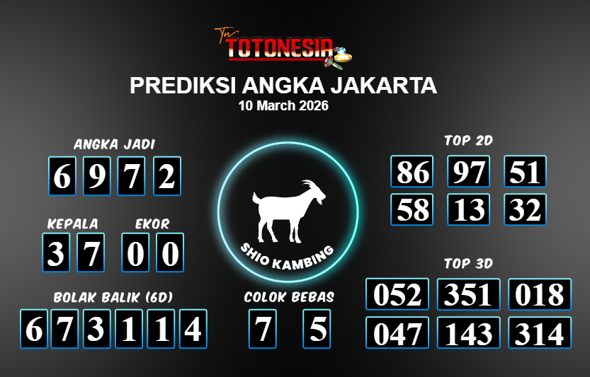Prediksi JAKARTA adalah perhitungan nomor togel unggulan dari agen suhu togel yang menyajikan angka prediksi paling akurat, sehingga memberikan banyak keuntungan saat bermain di pasar togel JAKARTA . TotoNesia adalah prediksi dengan rasio kemenangan tertinggi di Indonesia. Sebagai penyedia togel yang dapat dipercaya, kami bertekad untuk memberikan ramalan togel yang handal dengan hadiah terbesarnya. Maka dari itu, jangan sampai terlewatkan prediksi bandar togel dengan hadiah terbanyak bet 100 dari pasar togel terbaik JAKARTA Daftar sekarang juga di bandar.