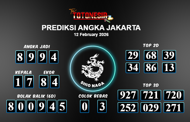 Toto Nesia : Bocoran Prediksi Togel JAKARTA Tanggal 12 FEBUARI 2026