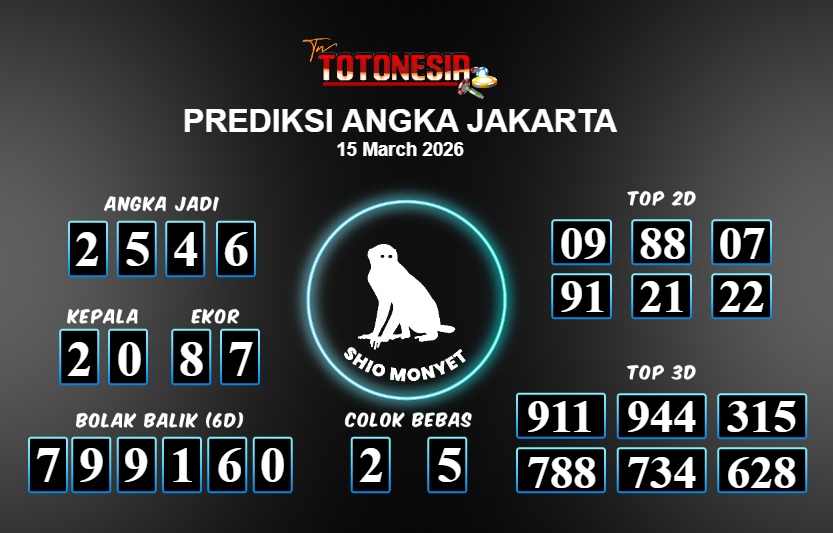 Prediksi JAKARTA adalah perhitungan nomor togel unggulan dari agen suhu togel yang menyajikan angka prediksi paling akurat, sehingga memberikan banyak keuntungan saat bermain di pasar togel JAKARTA . TotoNesia adalah prediksi dengan rasio kemenangan tertinggi di Indonesia. Sebagai penyedia togel yang dapat dipercaya, kami bertekad untuk memberikan ramalan togel yang handal dengan hadiah terbesarnya. Maka dari itu, jangan sampai terlewatkan prediksi bandar togel dengan hadiah terbanyak bet 100 dari pasar togel terbaik JAKARTA Daftar sekarang juga di bandar.
