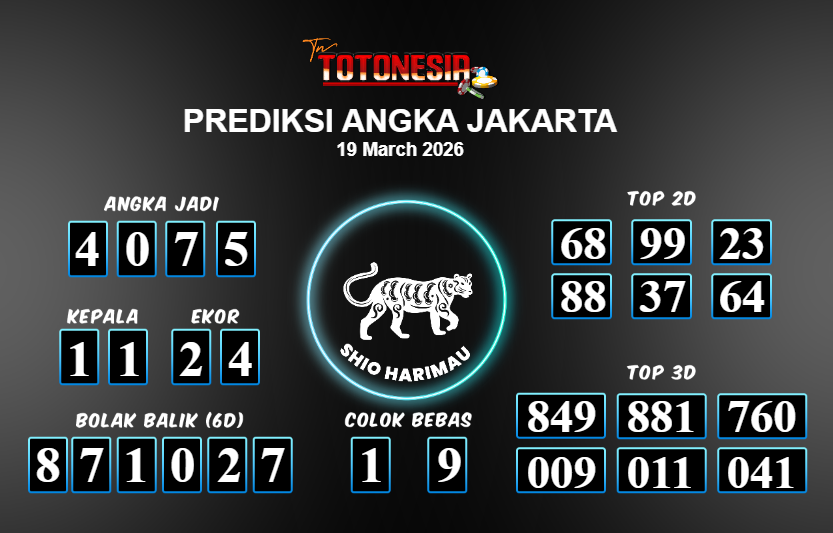 Prediksi JAKARTA adalah perhitungan nomor togel unggulan dari agen suhu togel yang menyajikan angka prediksi paling akurat, sehingga memberikan banyak keuntungan saat bermain di pasar togel JAKARTA . TotoNesia adalah prediksi dengan rasio kemenangan tertinggi di Indonesia. Sebagai penyedia togel yang dapat dipercaya, kami bertekad untuk memberikan ramalan togel yang handal dengan hadiah terbesarnya. Maka dari itu, jangan sampai terlewatkan prediksi bandar togel dengan hadiah terbanyak bet 100 dari pasar togel terbaik JAKARTA Daftar sekarang juga di bandar.