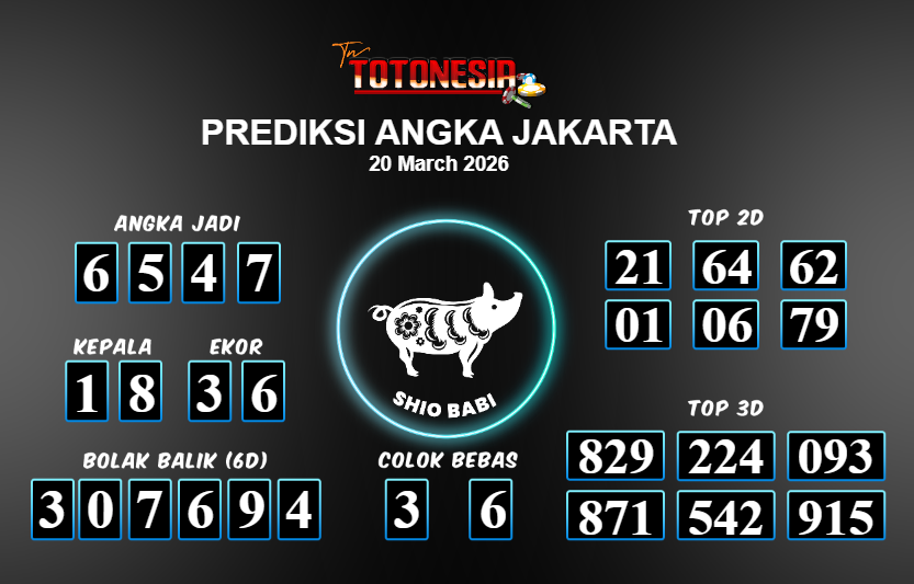 Prediksi JAKARTA adalah perhitungan nomor togel unggulan dari agen suhu togel yang menyajikan angka prediksi paling akurat, sehingga memberikan banyak keuntungan saat bermain di pasar togel JAKARTA . TotoNesia adalah prediksi dengan rasio kemenangan tertinggi di Indonesia. Sebagai penyedia togel yang dapat dipercaya, kami bertekad untuk memberikan ramalan togel yang handal dengan hadiah terbesarnya. Maka dari itu, jangan sampai terlewatkan prediksi bandar togel dengan hadiah terbanyak bet 100 dari pasar togel terbaik JAKARTA Daftar sekarang juga di bandar.