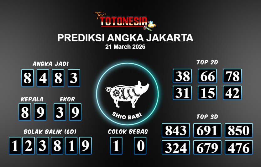 Prediksi JAKARTA adalah perhitungan nomor togel unggulan dari agen suhu togel yang menyajikan angka prediksi paling akurat, sehingga memberikan banyak keuntungan saat bermain di pasar togel JAKARTA . TotoNesia adalah prediksi dengan rasio kemenangan tertinggi di Indonesia. Sebagai penyedia togel yang dapat dipercaya, kami bertekad untuk memberikan ramalan togel yang handal dengan hadiah terbesarnya. Maka dari itu, jangan sampai terlewatkan prediksi bandar togel dengan hadiah terbanyak bet 100 dari pasar togel terbaik JAKARTA Daftar sekarang juga di bandar.