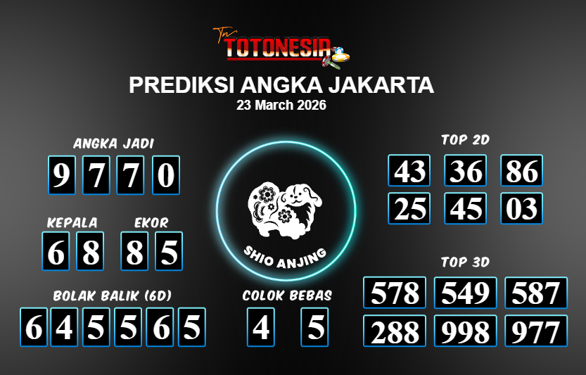 Prediksi JAKARTA adalah perhitungan nomor togel unggulan dari agen suhu togel yang menyajikan angka prediksi paling akurat, sehingga memberikan banyak keuntungan saat bermain di pasar togel JAKARTA . TotoNesia adalah prediksi dengan rasio kemenangan tertinggi di Indonesia. Sebagai penyedia togel yang dapat dipercaya, kami bertekad untuk memberikan ramalan togel yang handal dengan hadiah terbesarnya. Maka dari itu, jangan sampai terlewatkan prediksi bandar togel dengan hadiah terbanyak bet 100 dari pasar togel terbaik JAKARTA Daftar sekarang juga di bandar.