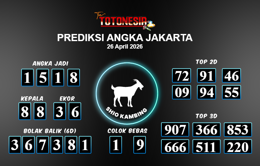 Prediksi JAKARTA adalah perhitungan nomor togel unggulan dari agen suhu togel yang menyajikan angka prediksi paling akurat, sehingga memberikan banyak keuntungan saat bermain di pasar togel JAKARTA . TotoNesia adalah prediksi dengan rasio kemenangan tertinggi di Indonesia. Sebagai penyedia togel yang dapat dipercaya, kami bertekad untuk memberikan ramalan togel yang handal dengan hadiah terbesarnya. Maka dari itu, jangan sampai terlewatkan prediksi bandar togel dengan hadiah terbanyak bet 100 dari pasar togel terbaik JAKARTA Daftar sekarang juga di bandar.