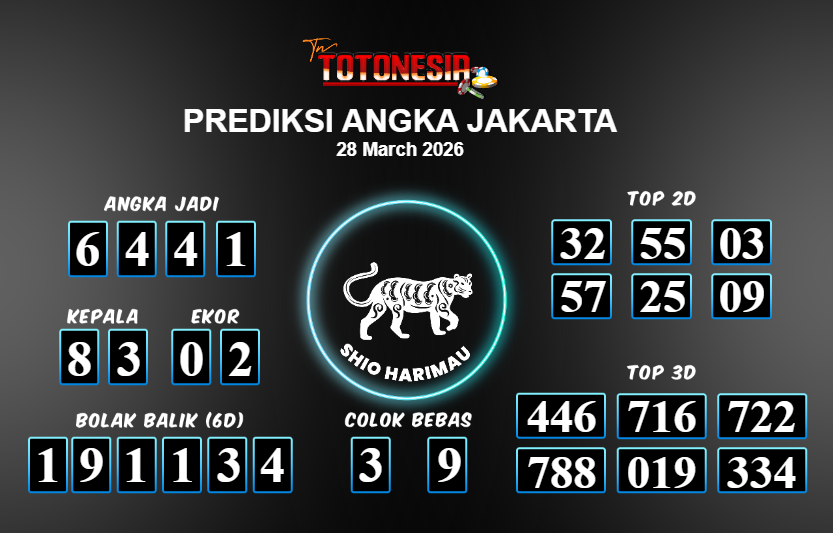 Prediksi JAKARTA adalah perhitungan nomor togel unggulan dari agen suhu togel yang menyajikan angka prediksi paling akurat, sehingga memberikan banyak keuntungan saat bermain di pasar togel JAKARTA . TotoNesia adalah prediksi dengan rasio kemenangan tertinggi di Indonesia. Sebagai penyedia togel yang dapat dipercaya, kami bertekad untuk memberikan ramalan togel yang handal dengan hadiah terbesarnya. Maka dari itu, jangan sampai terlewatkan prediksi bandar togel dengan hadiah terbanyak bet 100 dari pasar togel terbaik JAKARTA Daftar sekarang juga di bandar.