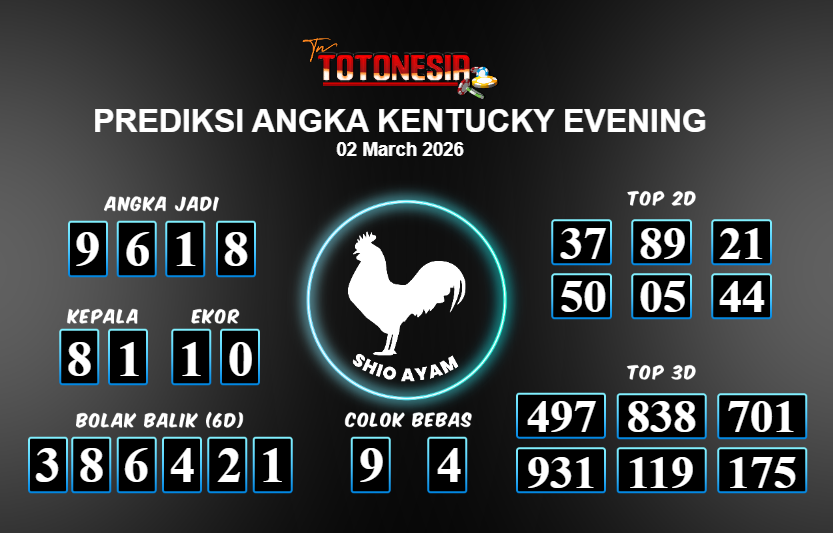 Toto Nesia : Bocoran Prediksi Togel KENTUCKY EVENING Tanggal 02 MARET 2026