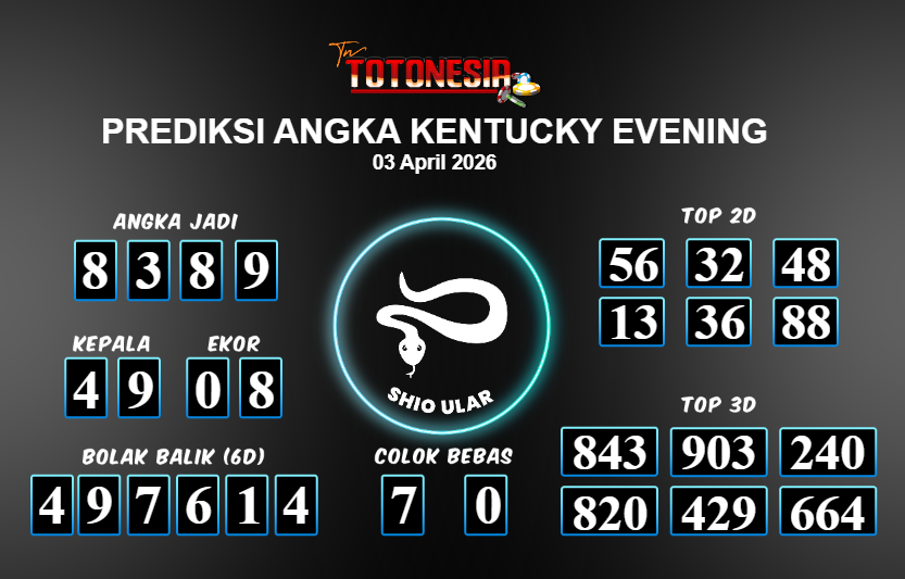Toto Nesia : Bocoran Prediksi Togel KENTUCKY EVENING Tanggal 03 APRIL 2026
