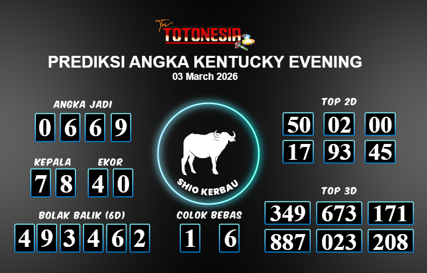 Toto Nesia : Bocoran Prediksi Togel KENTUCKY EVENING Tanggal 03 MARET 2026