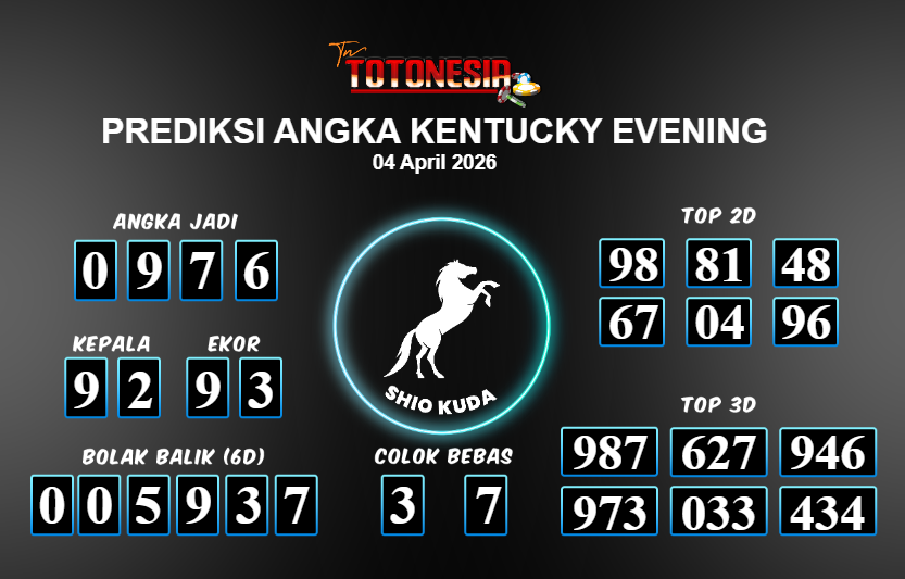 Prediksi KENTUCKY EVENING adalah perhitungan nomor togel unggulan dari agen suhu togel yang menyajikan angka prediksi paling akurat, sehingga memberikan banyak keuntungan saat bermain di pasar togel KENTUCKY EVENING . TotoNesia adalah prediksi dengan rasio kemenangan tertinggi di Indonesia. Sebagai penyedia togel yang dapat dipercaya, kami bertekad untuk memberikan ramalan togel yang handal dengan hadiah terbesarnya. Maka dari itu, jangan sampai terlewatkan prediksi bandar togel dengan hadiah terbanyak bet 100 dari pasar togel terbaik KENTUCKY EVENING Daftar sekarang juga di bandar.