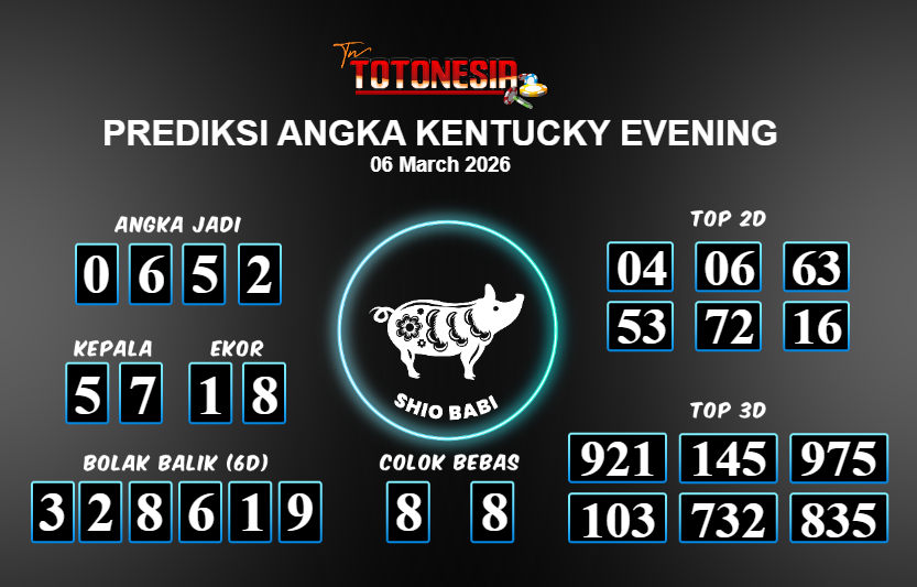 Prediksi KENTUCKY EVENING adalah perhitungan nomor togel unggulan dari agen suhu togel yang menyajikan angka prediksi paling akurat, sehingga memberikan banyak keuntungan saat bermain di pasar togel KENTUCKY EVENING . TotoNesia adalah prediksi dengan rasio kemenangan tertinggi di Indonesia. Sebagai penyedia togel yang dapat dipercaya, kami bertekad untuk memberikan ramalan togel yang handal dengan hadiah terbesarnya. Maka dari itu, jangan sampai terlewatkan prediksi bandar togel dengan hadiah terbanyak bet 100 dari pasar togel terbaik KENTUCKY EVENING Daftar sekarang juga di bandar.