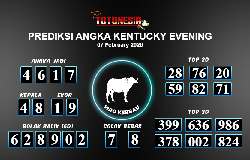 Toto Nesia : Bocoran Prediksi Togel KENTUCKY EVENING Tanggal 07 FEBUARI 2026