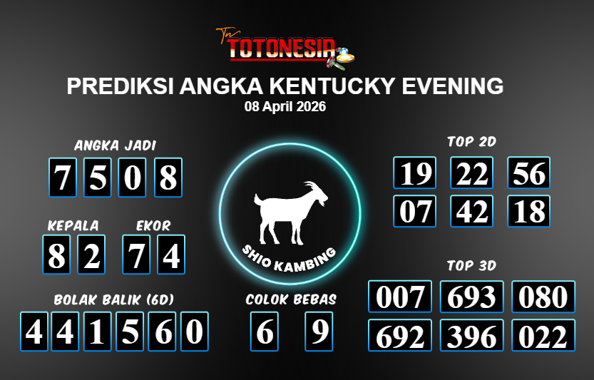 Prediksi KENTUCKY EVENING adalah perhitungan nomor togel unggulan dari agen suhu togel yang menyajikan angka prediksi paling akurat, sehingga memberikan banyak keuntungan saat bermain di pasar togel KENTUCKY EVENING . TotoNesia adalah prediksi dengan rasio kemenangan tertinggi di Indonesia. Sebagai penyedia togel yang dapat dipercaya, kami bertekad untuk memberikan ramalan togel yang handal dengan hadiah terbesarnya. Maka dari itu, jangan sampai terlewatkan prediksi bandar togel dengan hadiah terbanyak bet 100 dari pasar togel terbaik KENTUCKY EVENING Daftar sekarang juga di bandar.
