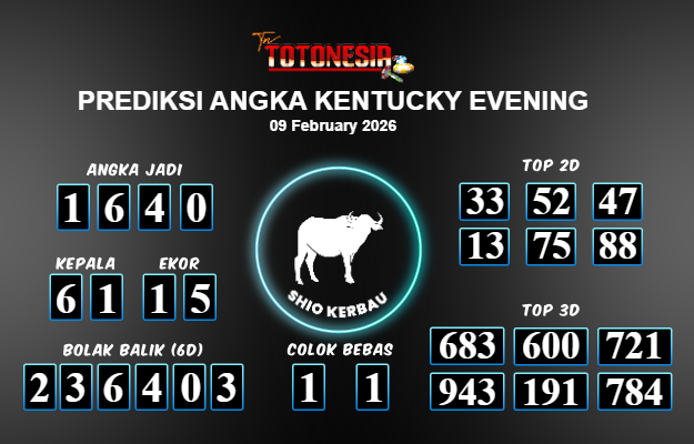 Prediksi KENTUCKY EVENING adalah perhitungan nomor togel unggulan dari agen suhu togel yang menyajikan angka prediksi paling akurat, sehingga memberikan banyak keuntungan saat bermain di pasar togel KENTUCKY EVENING . TotoNesia adalah prediksi dengan rasio kemenangan tertinggi di Indonesia. Sebagai penyedia togel yang dapat dipercaya, kami bertekad untuk memberikan ramalan togel yang handal dengan hadiah terbesarnya. Maka dari itu, jangan sampai terlewatkan prediksi bandar togel dengan hadiah terbanyak bet 100 dari pasar togel terbaik KENTUCKY EVENING Daftar sekarang juga di bandar.