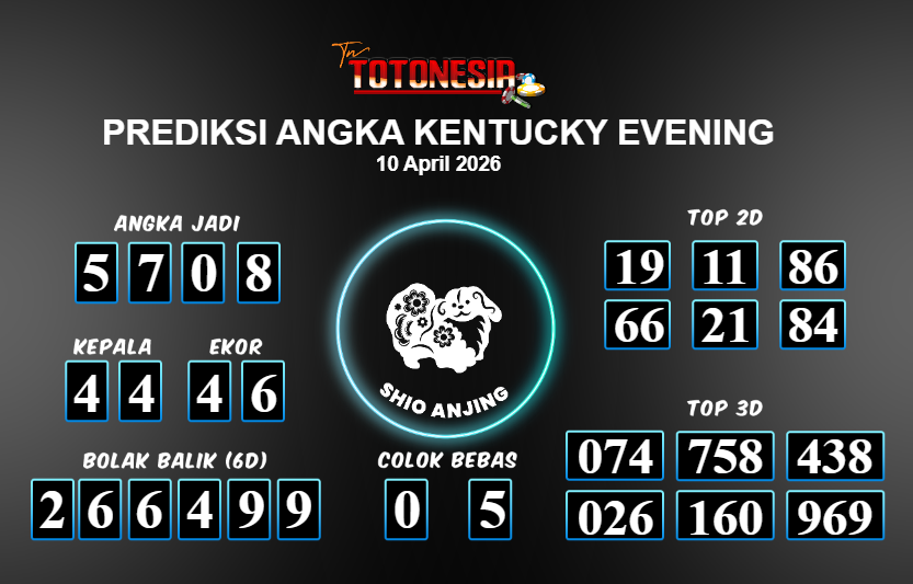 Prediksi KENTUCKY EVENING adalah perhitungan nomor togel unggulan dari agen suhu togel yang menyajikan angka prediksi paling akurat, sehingga memberikan banyak keuntungan saat bermain di pasar togel KENTUCKY EVENING . TotoNesia adalah prediksi dengan rasio kemenangan tertinggi di Indonesia. Sebagai penyedia togel yang dapat dipercaya, kami bertekad untuk memberikan ramalan togel yang handal dengan hadiah terbesarnya. Maka dari itu, jangan sampai terlewatkan prediksi bandar togel dengan hadiah terbanyak bet 100 dari pasar togel terbaik KENTUCKY EVENING Daftar sekarang juga di bandar.