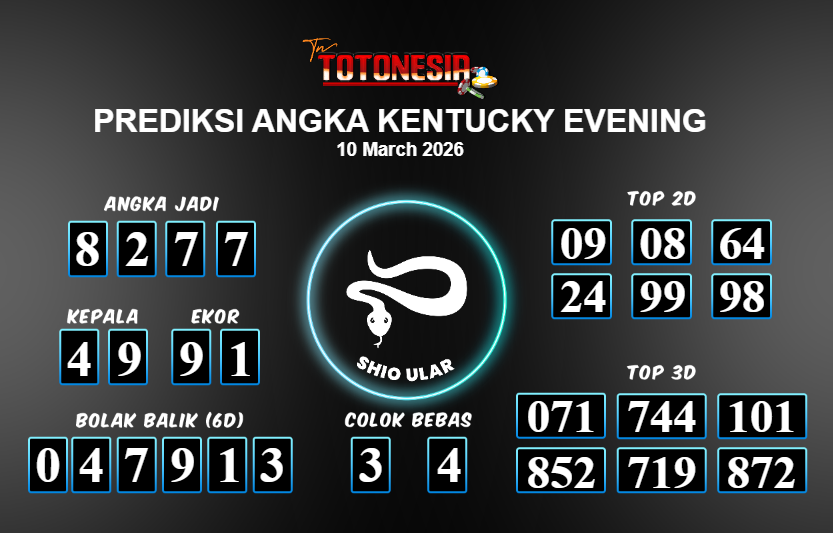 Prediksi KENTUCKY EVENING adalah perhitungan nomor togel unggulan dari agen suhu togel yang menyajikan angka prediksi paling akurat, sehingga memberikan banyak keuntungan saat bermain di pasar togel KENTUCKY EVENING . TotoNesia adalah prediksi dengan rasio kemenangan tertinggi di Indonesia. Sebagai penyedia togel yang dapat dipercaya, kami bertekad untuk memberikan ramalan togel yang handal dengan hadiah terbesarnya. Maka dari itu, jangan sampai terlewatkan prediksi bandar togel dengan hadiah terbanyak bet 100 dari pasar togel terbaik KENTUCKY EVENING Daftar sekarang juga di bandar.