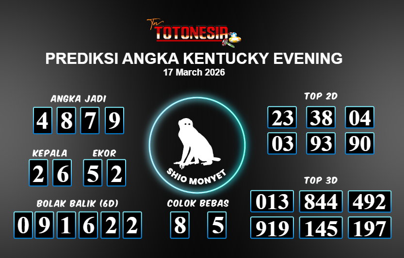 Prediksi KENTUCKY EVENING adalah perhitungan nomor togel unggulan dari agen suhu togel yang menyajikan angka prediksi paling akurat, sehingga memberikan banyak keuntungan saat bermain di pasar togel KENTUCKY EVENING. TotoNesia adalah prediksi dengan rasio kemenangan tertinggi di Indonesia. Sebagai penyedia togel yang dapat dipercaya, kami bertekad untuk memberikan ramalan togel yang handal dengan hadiah terbesarnya. Maka dari itu, jangan sampai terlewatkan prediksi bandar togel dengan hadiah terbanyak bet 100 dari pasar togel terbaik KENTUCKY EVENING Daftar sekarang juga di bandar.