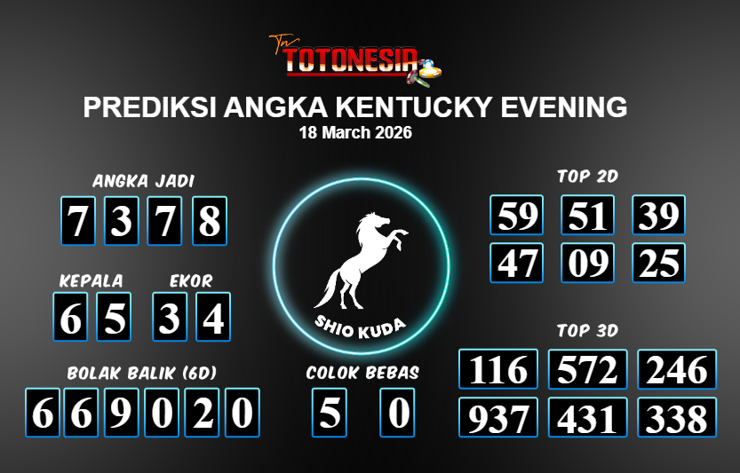 Prediksi KENTUCKY EVENING adalah perhitungan nomor togel unggulan dari agen suhu togel yang menyajikan angka prediksi paling akurat, sehingga memberikan banyak keuntungan saat bermain di pasar togel KENTUCKY EVENING . TotoNesia adalah prediksi dengan rasio kemenangan tertinggi di Indonesia. Sebagai penyedia togel yang dapat dipercaya, kami bertekad untuk memberikan ramalan togel yang handal dengan hadiah terbesarnya. Maka dari itu, jangan sampai terlewatkan prediksi bandar togel dengan hadiah terbanyak bet 100 dari pasar togel terbaik KENTUCKY EVENING Daftar sekarang juga di bandar.