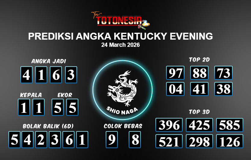 Prediksi KENTUCKY EVENING adalah perhitungan nomor togel unggulan dari agen suhu togel yang menyajikan angka prediksi paling akurat, sehingga memberikan banyak keuntungan saat bermain di pasar togel KENTUCKY EVENING . TotoNesia adalah prediksi dengan rasio kemenangan tertinggi di Indonesia. Sebagai penyedia togel yang dapat dipercaya, kami bertekad untuk memberikan ramalan togel yang handal dengan hadiah terbesarnya. Maka dari itu, jangan sampai terlewatkan prediksi bandar togel dengan hadiah terbanyak bet 100 dari pasar togel terbaik KENTUCKY EVENING Daftar sekarang juga di bandar.