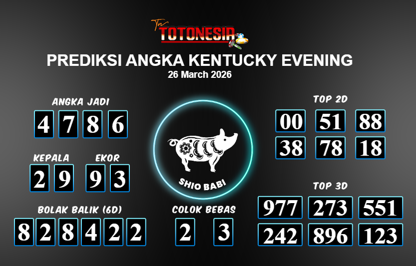 Prediksi KENTUCKY EVENING adalah perhitungan nomor togel unggulan dari agen suhu togel yang menyajikan angka prediksi paling akurat, sehingga memberikan banyak keuntungan saat bermain di pasar togel KENTUCKY EVENING . TotoNesia adalah prediksi dengan rasio kemenangan tertinggi di Indonesia. Sebagai penyedia togel yang dapat dipercaya, kami bertekad untuk memberikan ramalan togel yang handal dengan hadiah terbesarnya. Maka dari itu, jangan sampai terlewatkan prediksi bandar togel dengan hadiah terbanyak bet 100 dari pasar togel terbaik KENTUCKY EVENING Daftar sekarang juga di bandar.