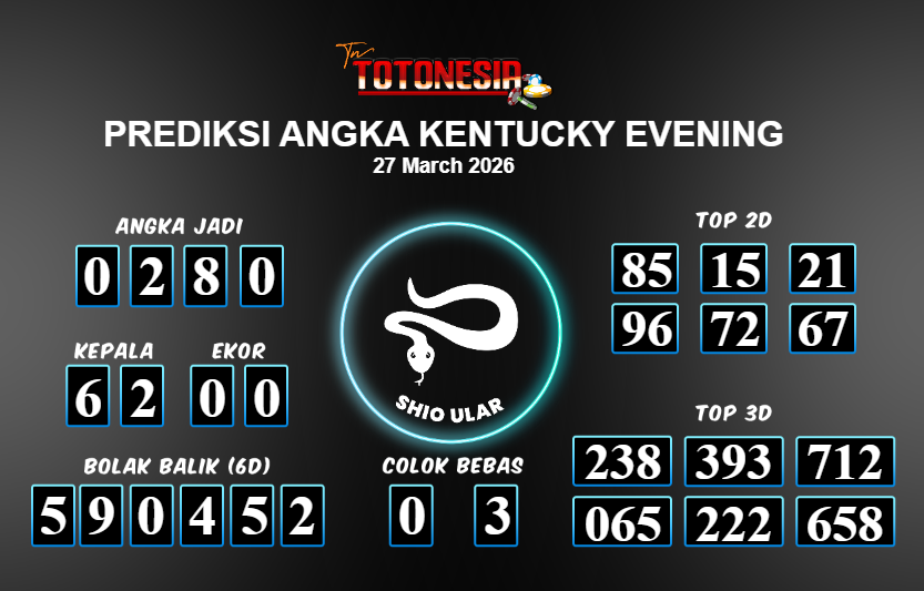 Prediksi KENTUCKY EVENING adalah perhitungan nomor togel unggulan dari agen suhu togel yang menyajikan angka prediksi paling akurat, sehingga memberikan banyak keuntungan saat bermain di pasar togel KENTUCKY EVENING . TotoNesia adalah prediksi dengan rasio kemenangan tertinggi di Indonesia. Sebagai penyedia togel yang dapat dipercaya, kami bertekad untuk memberikan ramalan togel yang handal dengan hadiah terbesarnya. Maka dari itu, jangan sampai terlewatkan prediksi bandar togel dengan hadiah terbanyak bet 100 dari pasar togel terbaik KENTUCKY EVENING Daftar sekarang juga di bandar.