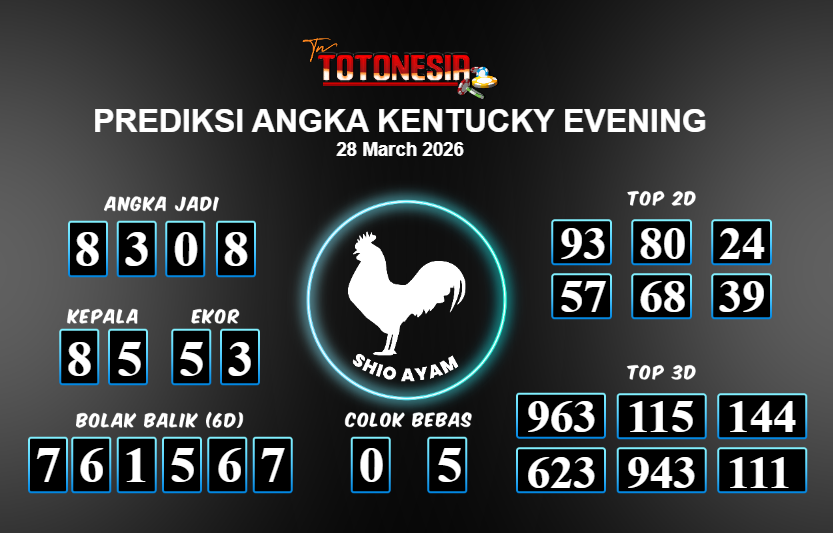 Prediksi KENTUCKY EVENING adalah perhitungan nomor togel unggulan dari agen suhu togel yang menyajikan angka prediksi paling akurat, sehingga memberikan banyak keuntungan saat bermain di pasar togel KENTUCKY EVENING . TotoNesia adalah prediksi dengan rasio kemenangan tertinggi di Indonesia. Sebagai penyedia togel yang dapat dipercaya, kami bertekad untuk memberikan ramalan togel yang handal dengan hadiah terbesarnya. Maka dari itu, jangan sampai terlewatkan prediksi bandar togel dengan hadiah terbanyak bet 100 dari pasar togel terbaik KENTUCKY EVENING Daftar sekarang juga di bandar.
