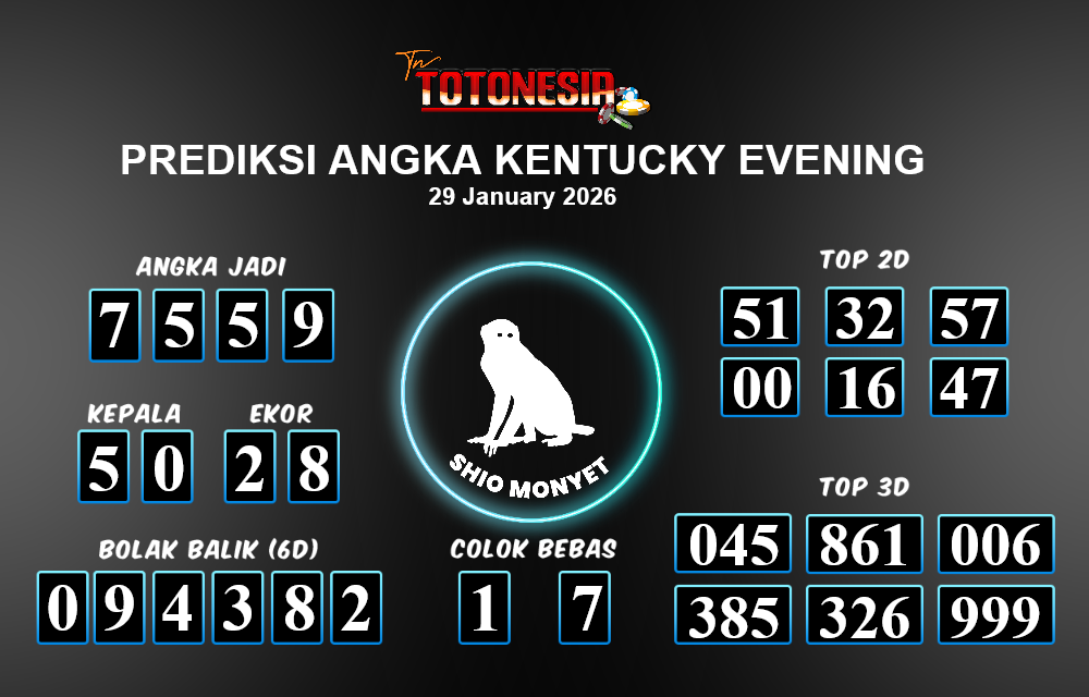 Prediksi KENTUCKY EVENING adalah perhitungan nomor togel unggulan dari agen suhu togel yang menyajikan angka prediksi paling akurat, sehingga memberikan banyak keuntungan saat bermain di pasar togel KENTUCKY EVENING. TotoNesia adalah prediksi dengan rasio kemenangan tertinggi di Indonesia. Sebagai penyedia togel yang dapat dipercaya, kami bertekad untuk memberikan ramalan togel yang handal dengan hadiah terbesarnya. Maka dari itu, jangan sampai terlewatkan prediksi bandar togel dengan hadiah terbanyak bet 100 dari pasar togel terbaik KENTUCKY EVENING daftar sekarang juga di bandar.