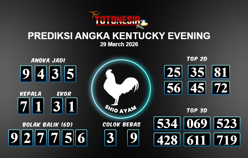 Toto Nesia : Bocoran Prediksi Togel KENTUCKY EVENING Tanggal 29 MARET 2026