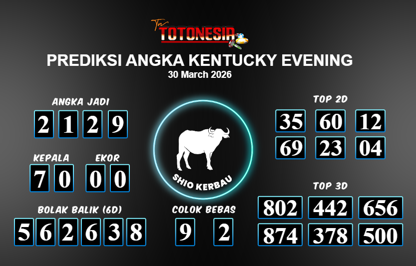 Prediksi KENTUCKY EVENING adalah perhitungan nomor togel unggulan dari agen suhu togel yang menyajikan angka prediksi paling akurat, sehingga memberikan banyak keuntungan saat bermain di pasar togel KENTUCKY EVENING . TotoNesia adalah prediksi dengan rasio kemenangan tertinggi di Indonesia. Sebagai penyedia togel yang dapat dipercaya, kami bertekad untuk memberikan ramalan togel yang handal dengan hadiah terbesarnya. Maka dari itu, jangan sampai terlewatkan prediksi bandar togel dengan hadiah terbanyak bet 100 dari pasar togel terbaik KENTUCKY EVENING Daftar sekarang juga di bandar.
