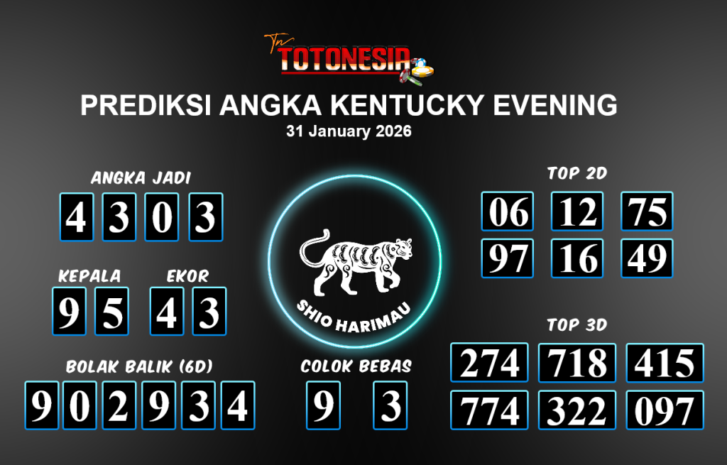 Prediksi KENTUCKY EVENING adalah perhitungan nomor togel unggulan dari agen suhu togel yang menyajikan angka prediksi paling akurat, sehingga memberikan banyak keuntungan saat bermain di pasar togel KENTUCKY EVENING. TotoNesia adalah prediksi dengan rasio kemenangan tertinggi di Indonesia. Sebagai penyedia togel yang dapat dipercaya, kami bertekad untuk memberikan ramalan togel yang handal dengan hadiah terbesarnya. Maka dari itu, jangan sampai terlewatkan prediksi bandar togel dengan hadiah terbanyak bet 100 dari pasar togel terbaik KENTUCKY EVENING Daftar sekarang juga di bandar.