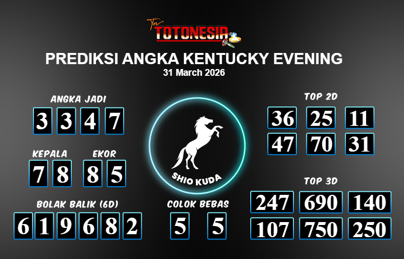 Prediksi KENTUCKY EVENING adalah perhitungan nomor togel unggulan dari agen suhu togel yang menyajikan angka prediksi paling akurat, sehingga memberikan banyak keuntungan saat bermain di pasar togel KENTUCKY EVENING . TotoNesia adalah prediksi dengan rasio kemenangan tertinggi di Indonesia. Sebagai penyedia togel yang dapat dipercaya, kami bertekad untuk memberikan ramalan togel yang handal dengan hadiah terbesarnya. Maka dari itu, jangan sampai terlewatkan prediksi bandar togel dengan hadiah terbanyak bet 100 dari pasar togel terbaik KENTUCKY EVENING Daftar sekarang juga di bandar.