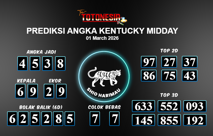 Toto Nesia : Bocoran Prediksi Togel KENTUCKY MIDDAY Tanggal 01 MARET 2026