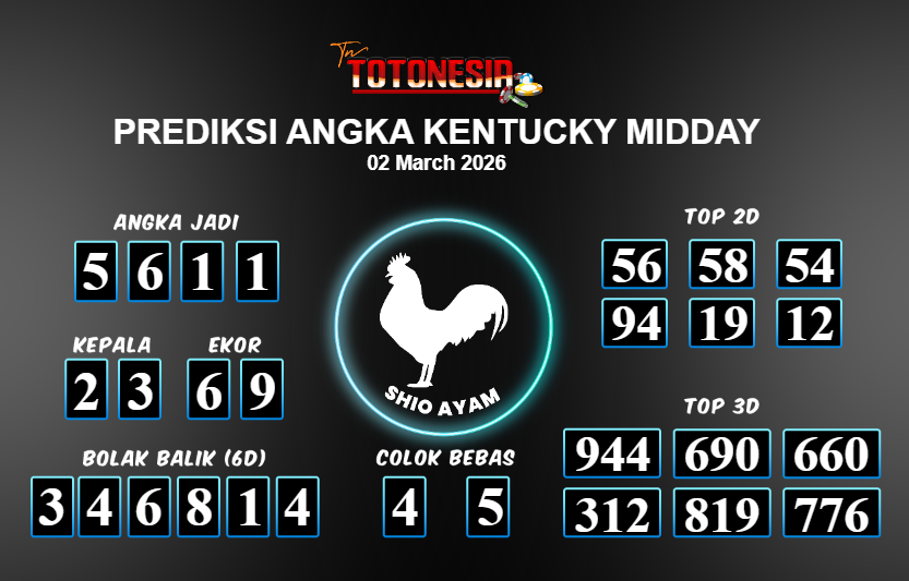 Toto Nesia : Bocoran Prediksi Togel KENTUCKY MIDDAY Tanggal 02 MARET 2026