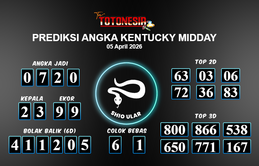 Toto Nesia : Bocoran Prediksi Togel KENTUCKY MIDDAY Tanggal 05 APRIL 2026