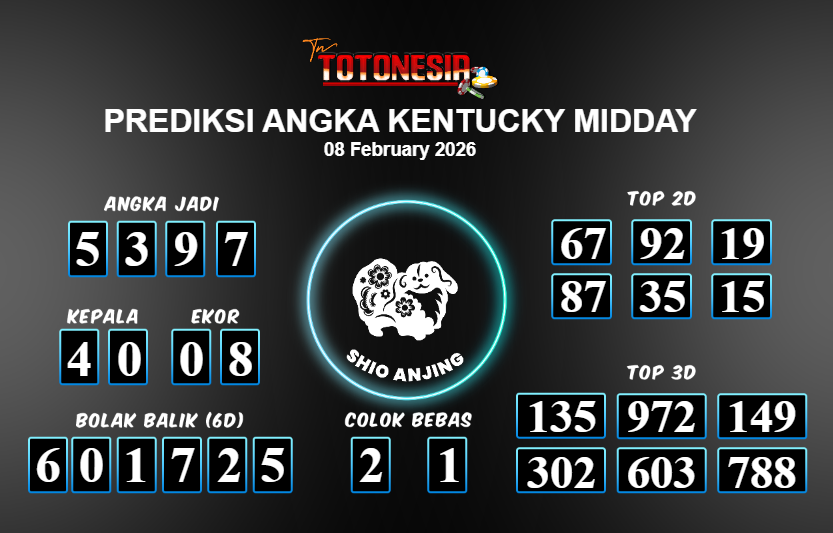 Toto Nesia : Bocoran Prediksi Togel KENTUCKY MIDDAY Tanggal 08 FEBUARI 2026