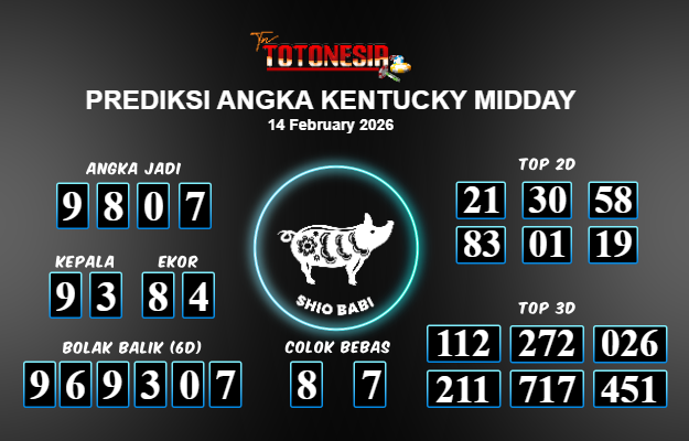 Toto Nesia : Bocoran Prediksi Togel KENTUCKY MIDDAY Tanggal 14 FEBUARI 2026