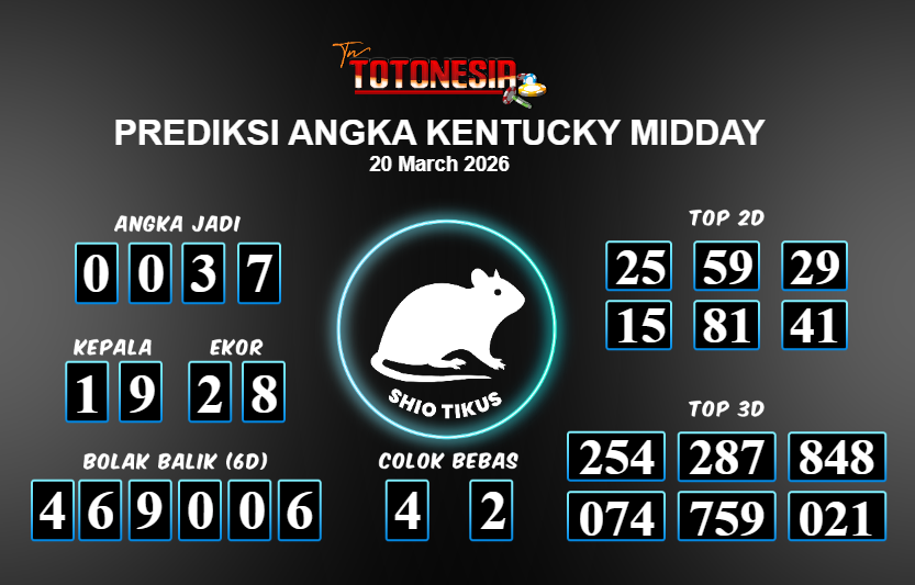 Toto Nesia : Bocoran Prediksi Togel KENTUCKY MIDDAY Tanggal 20 MARET 2026