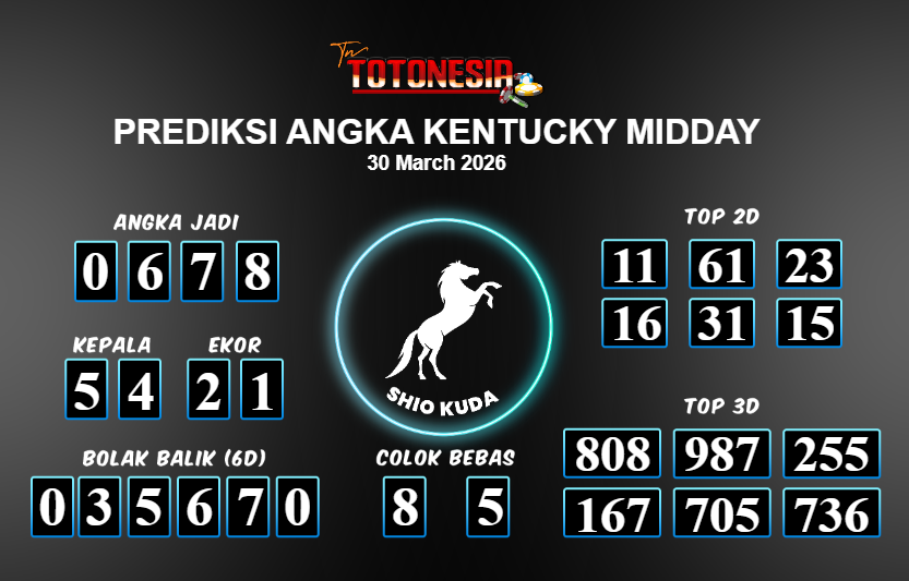 Toto Nesia : Bocoran Prediksi Togel KENTUCKY MIDDAY Tanggal 30 MARET 2026