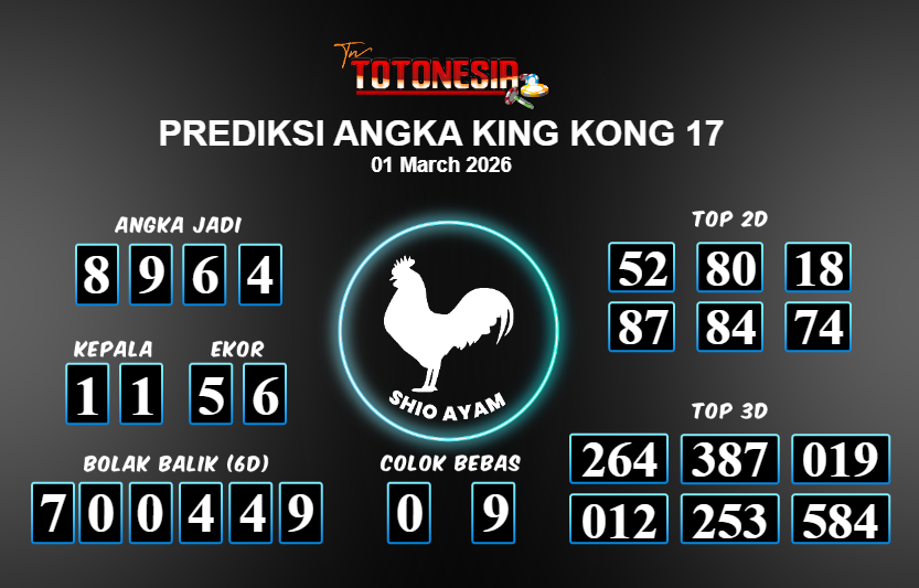 Toto Nesia : Bocoran Prediksi Togel KING KONG 17 Tanggal 01 MARET 2026
