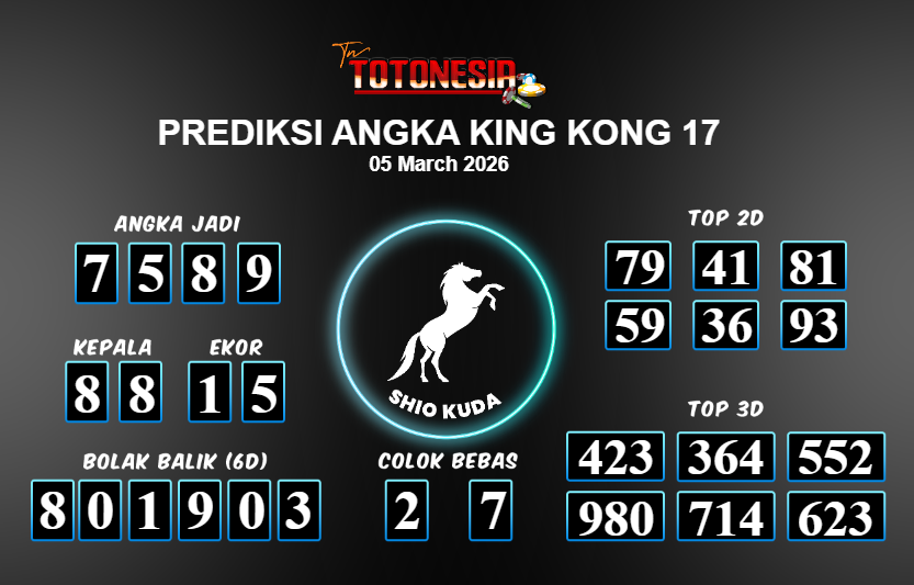 Prediksi KING KONG 17 adalah perhitungan nomor togel unggulan dari agen suhu togel yang menyajikan angka prediksi paling akurat, sehingga memberikan banyak keuntungan saat bermain di pasar togel KING KONG 17 . TotoNesia adalah prediksi dengan rasio kemenangan tertinggi di Indonesia. Sebagai penyedia togel yang dapat dipercaya, kami bertekad untuk memberikan ramalan togel yang handal dengan hadiah terbesarnya. Maka dari itu, jangan sampai terlewatkan prediksi bandar togel dengan hadiah terbanyak bet 100 dari pasar togel terbaik KING KONG 17 Daftar sekarang juga di bandar.