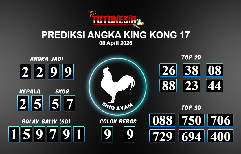 Prediksi KING KONG 17 adalah perhitungan nomor togel unggulan dari agen suhu togel yang menyajikan angka prediksi paling akurat, sehingga memberikan banyak keuntungan saat bermain di pasar togel KING KONG 17. TotoNesia adalah prediksi dengan rasio kemenangan tertinggi di Indonesia. Sebagai penyedia togel yang dapat dipercaya, kami bertekad untuk memberikan ramalan togel yang handal dengan hadiah terbesarnya. Maka dari itu, jangan sampai terlewatkan prediksi bandar togel dengan hadiah terbanyak bet 100 dari pasar togel terbaik KING KONG 17 Daftar sekarang juga di bandar.
