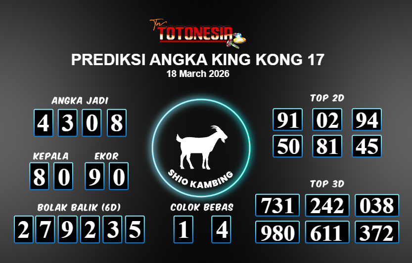 Prediksi KING KONG 17 adalah perhitungan nomor togel unggulan dari agen suhu togel yang menyajikan angka prediksi paling akurat, sehingga memberikan banyak keuntungan saat bermain di pasar togel KING KONG 17 . TotoNesia adalah prediksi dengan rasio kemenangan tertinggi di Indonesia. Sebagai penyedia togel yang dapat dipercaya, kami bertekad untuk memberikan ramalan togel yang handal dengan hadiah terbesarnya. Maka dari itu, jangan sampai terlewatkan prediksi bandar togel dengan hadiah terbanyak bet 100 dari pasar togel terbaik KING KONG 17 Daftar sekarang juga di bandar.