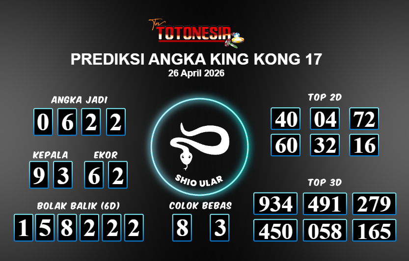 Toto Nesia : Bocoran Prediksi Togel KING KONG 17 Tanggal 26 APRIL 2026