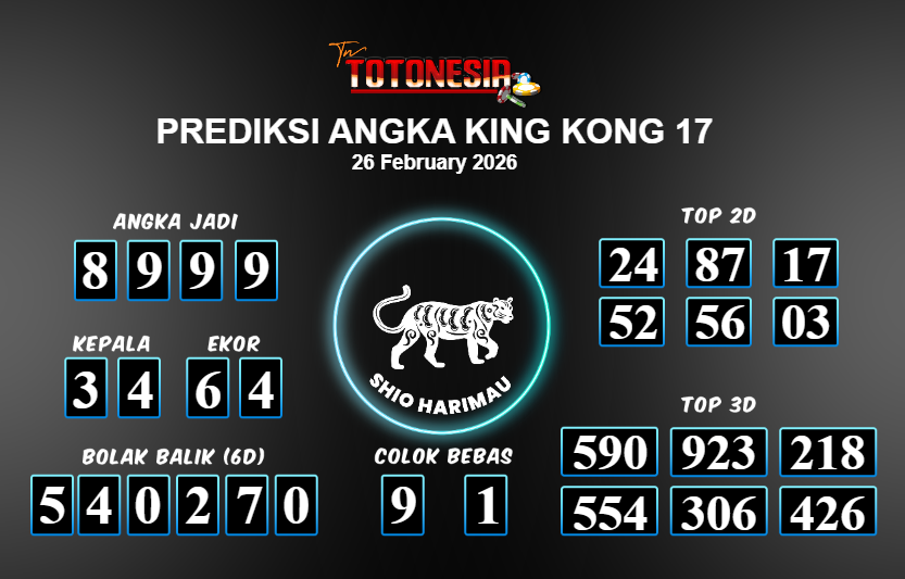 Toto Nesia : Bocoran Prediksi Togel KING KONG 17 Tanggal 26 FEBUARI 2026