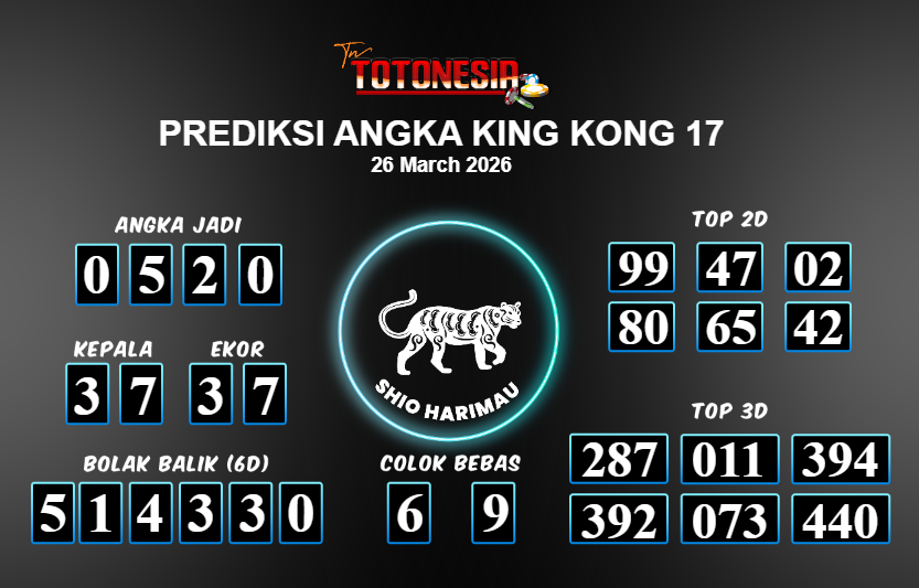 Prediksi KING KONG 17 adalah perhitungan nomor togel unggulan dari agen suhu togel yang menyajikan angka prediksi paling akurat, sehingga memberikan banyak keuntungan saat bermain di pasar togel KING KONG 17 . TotoNesia adalah prediksi dengan rasio kemenangan tertinggi di Indonesia. Sebagai penyedia togel yang dapat dipercaya, kami bertekad untuk memberikan ramalan togel yang handal dengan hadiah terbesarnya. Maka dari itu, jangan sampai terlewatkan prediksi bandar togel dengan hadiah terbanyak bet 100 dari pasar togel terbaik KING KONG 17 Daftar sekarang juga di bandar.