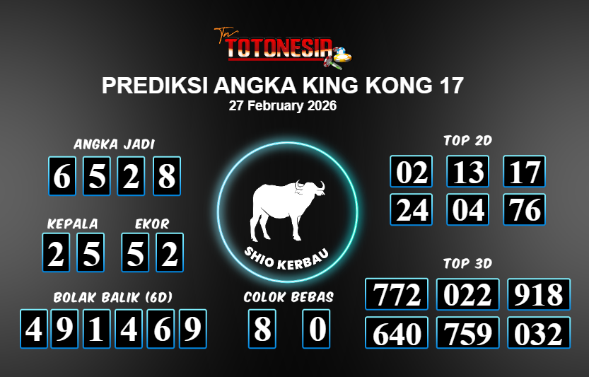 Toto Nesia : Bocoran Prediksi Togel KING KONG 17 Tanggal 27 FEBUARI 2026